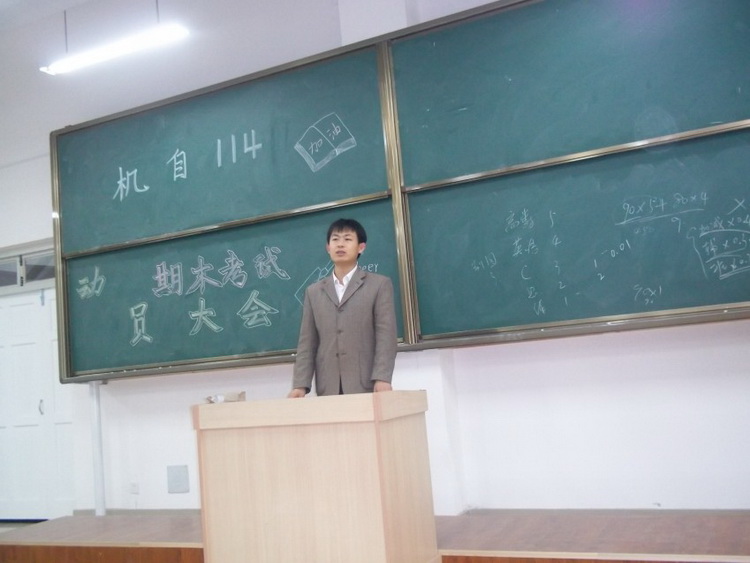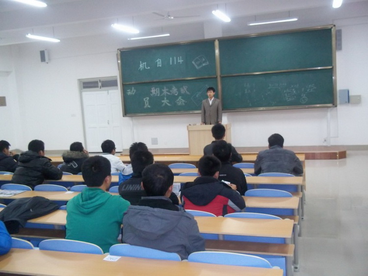 机自114班期末考试动员大会在高密校区M1教学楼213教室举行。辅导员老师秦洪庆,全班同学参加动员会。