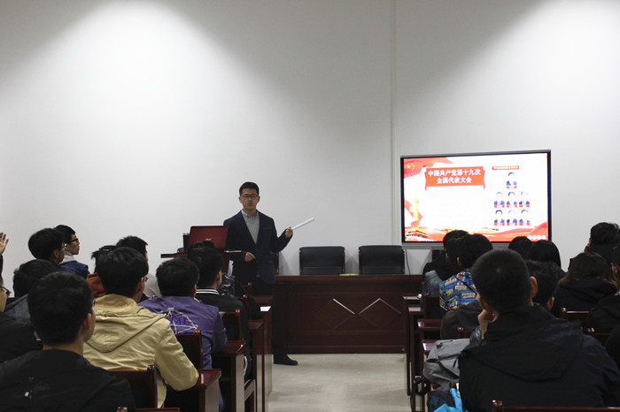 会议伊始,曲智强老师给干部们谈了谈自己对党的十九大精神的理解,将党的十九大精神内容与学生会工作紧密结合,给学生会干部们提出“学生会的工作都要有所传承有所发展,要加强学风建设,改善工作作风”等一系列要求,进而针对同学们日常生活中出现的问题给予解答,并提出“做事要深思熟虑,有所创新,稳扎稳打,脚踏实地”的工作思想。同时,曲智强老师结合时下热点新闻,对干部们的个人素质提出了更高的要求。最后,由高翔讲解学生会各部门考核章程。至此,本次干部培训会暨党的十九大精神宣讲会圆满结束。