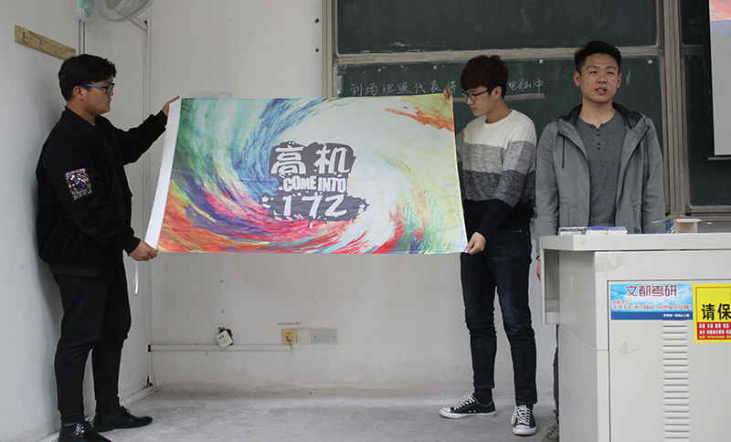 17级的各班同学积极参加比赛,为自己的班级设计班旗班徽。