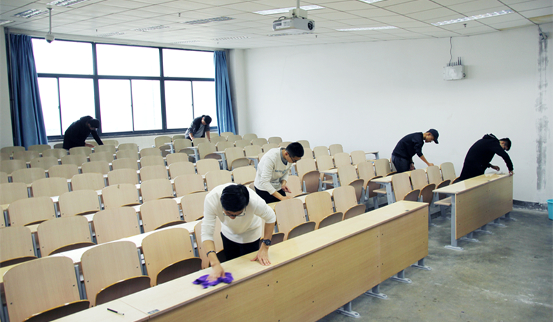学生会纪检部举行课桌清理活动,学院学生积极参加,共同自觉维护教室环境卫生。