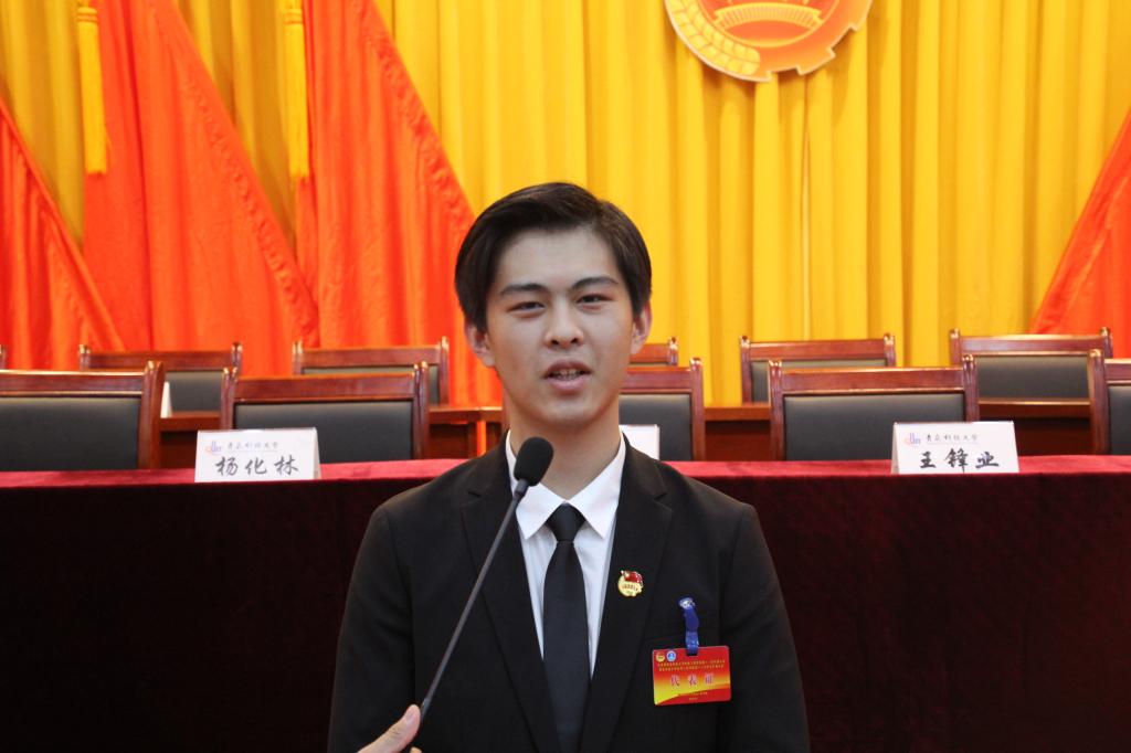 装控162班的张津侨,作为此次双代会的学生代表,我会正确表达广大学生的想法和意见,承担好责任并展现学生代表的良好精神风貌,为联系学生与学院的双代会尽自己最大的努力。最后,预祝大会圆满成功。