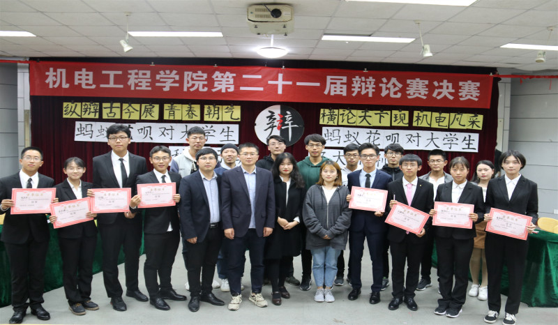 辩论团主席何天放、经管学院优秀辩手谢雨晴、自动化学院优秀辩手崔金举和机电辩论团历届优秀辩手担任评委及嘉宾。
