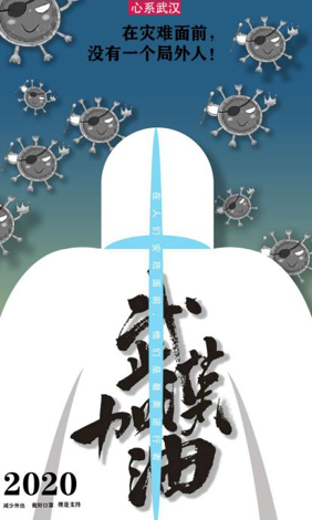 梁洪凯同学在抗击疫情期间制作了多张宣传抗疫、武汉加油的宣传海报,希望以这种形式给大家带来正能量,为抗击疫情的武汉人民送去祝福。