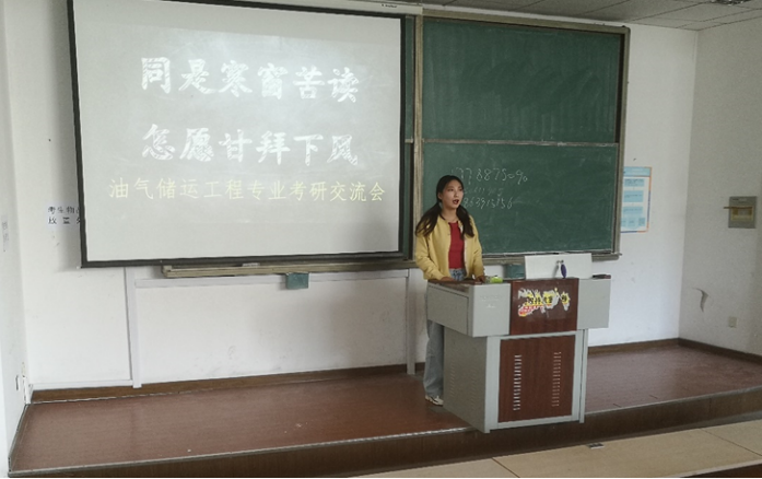 学工办主任、团委书记王作辉老师出席,并邀请了研究生学长以及在2021年考研中成绩优异、经验丰富的学长学姐进行考研经验分享,油气储运工程专业2018、2019、2020级学生全体参加。