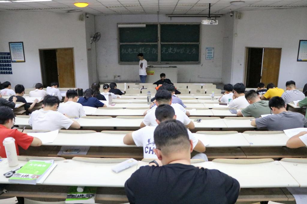 党史知识竞赛题目由选择题、判断题、简答题三种题型组成,各位参赛同学在考场中遵守考试纪律,认真答题,细心检查,最终交上一份满意答卷。