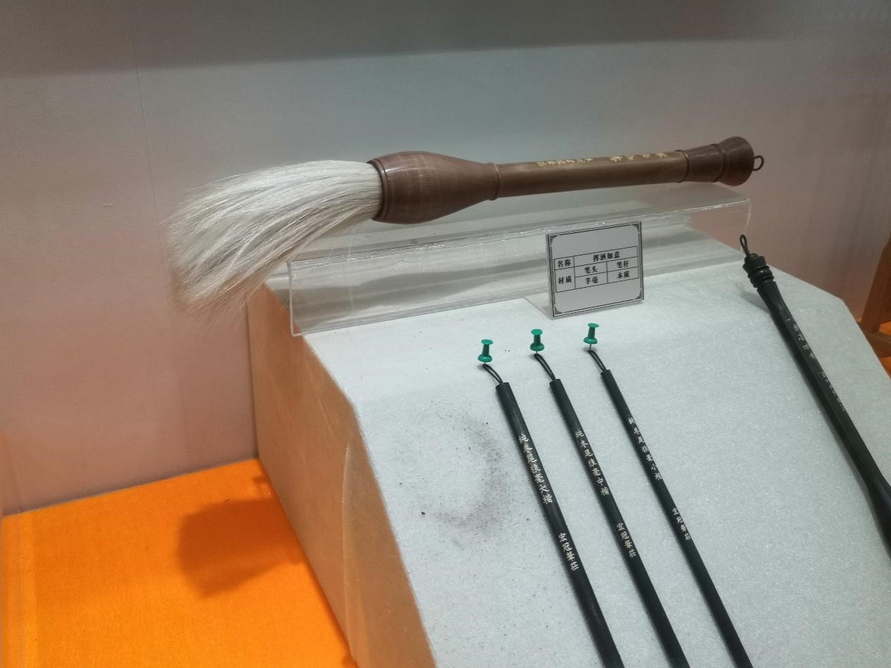 团队进入状元笔生产基地后,在基地负责人的带领下,一同参观了状元笔展示厅、红色丹青馆,走访调查了毛笔制作散户。了解毛笔制作的原料及工序,并通过对象访谈、问卷调查、街头采访等多种形式,调查当前大众对毛笔使用的认知情况以及当地毛笔的销售情况。据展厅的负责人介绍,莱州毛笔主要有两大特点:一是用料考究。精选用优质大黄鼠狼尾毛为主料,配以适量香狸尾毛、兔须、獾针、羊毛、鸡毛等细尾毛。二是工艺精湛。莱州毛笔从选料到制成,主要包括择料、水盆、干作、刻字、包装五大流程,经过选、配、垫、梳、圆、修、捋等120多道工序手工精制而成。