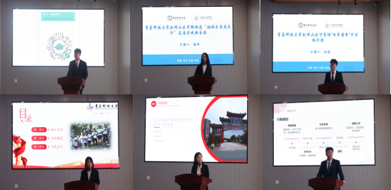 “传承红色基因,矢志接续奋斗”调研实践团等六支优秀团队和青鸟计划实践个人,各实践团队就选题背景、实践过程、团队总结、不足与建议等方面展开八分钟的展示。汇报内容丰富,形式多样,讲述了实现个人价值、传承红色基因、弘扬非遗文化、服务乡村振兴、致力教育帮扶、共守绿水青山等实践内容。实践团队纷纷表示在社会实践的过程中强化了自己的责任感和服务精神,在实践分享会上不仅毫无保留的向新同学分享实践经验,并且认真学习其他团队的闪光点,弥补自身的不足。