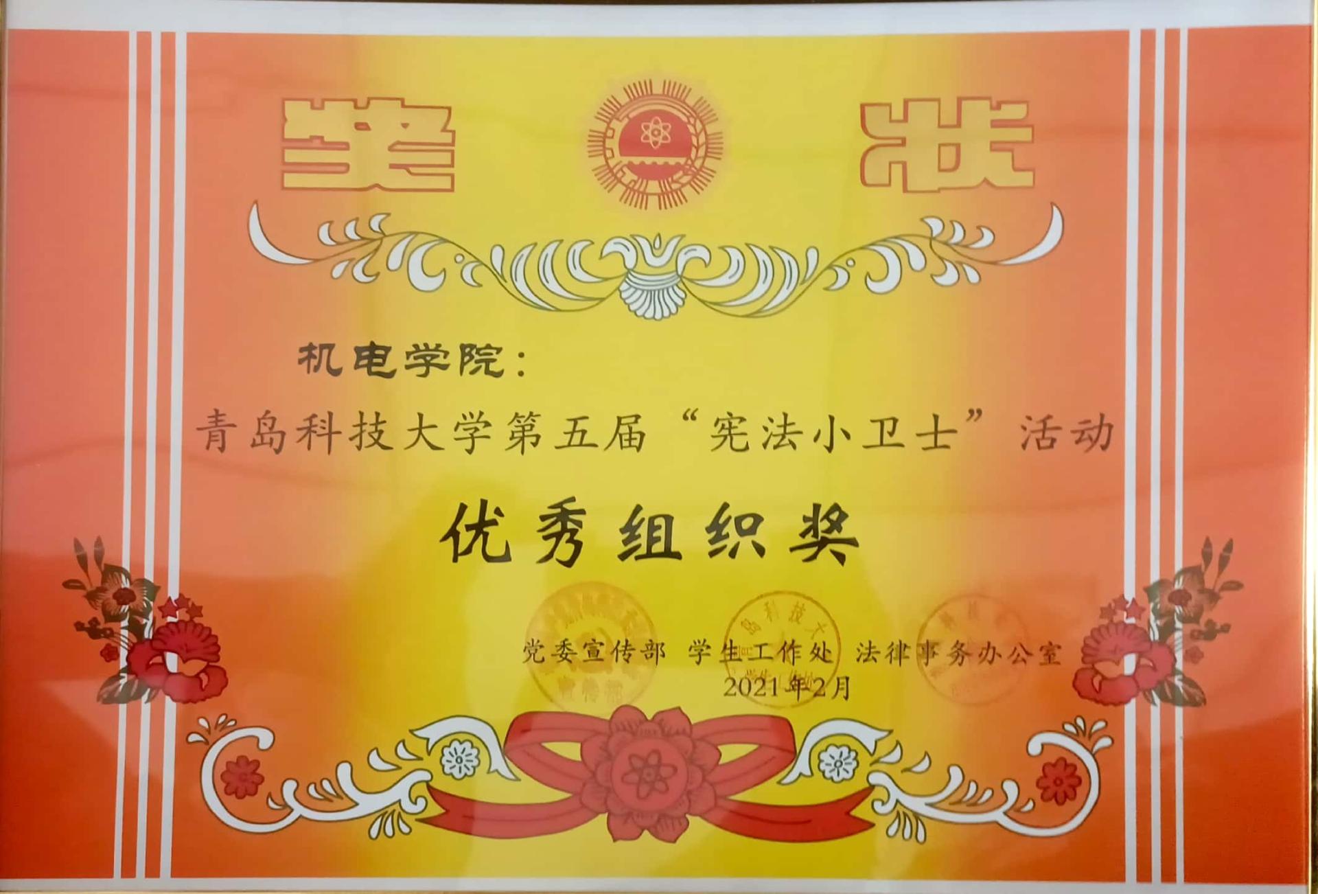 积极组织学院学生参与“宪法小卫士”活动,荣获学校第五届“宪法小卫士”优秀组织奖。