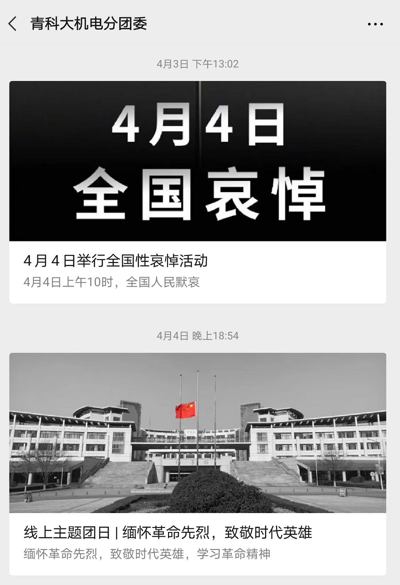 清明之际,为了积极响应国家号召,表达对在本次疫情中牺牲的烈士和同胞的缅怀,免费性爱片 组织开展“缅怀革命先烈,致敬时代英雄”主题系列活动。线上共寄哀思,悼念抗疫英雄4月4日上午,机电学…