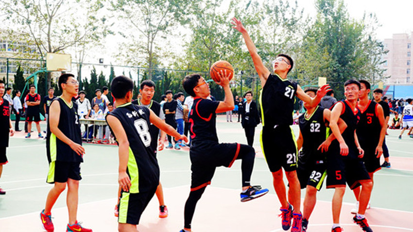 10月11日下午1:30,免费性爱片 “迎新杯”篮球赛在崂山校区南苑篮球场举行,免费性爱片 分团委逄柏鹏老师、曲智强老师及张宝库老师亲临现场为同学们加油助威。