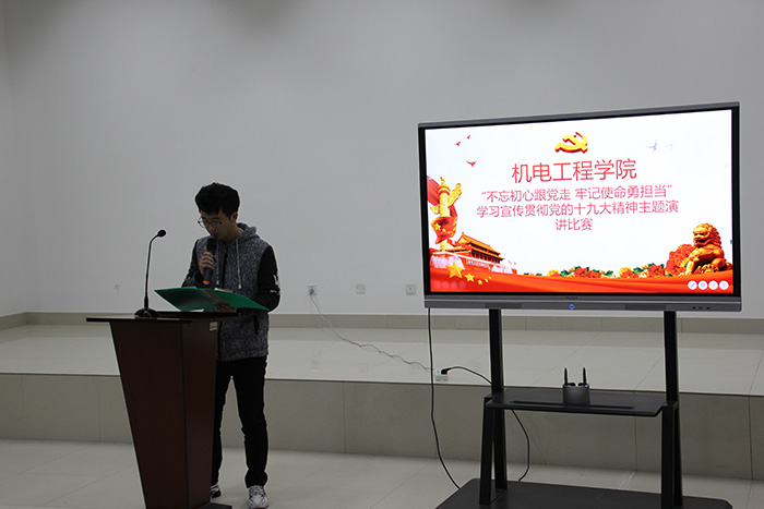 为深入学习宣传贯彻党的十九大精神,增强大学生的责任感、使命感。11月17日晚上18:30,由机电分团委组织监督部主办的“不忘初心跟党走,牢记使命勇担当”学习宣传贯彻党的十九大精神主题演讲…